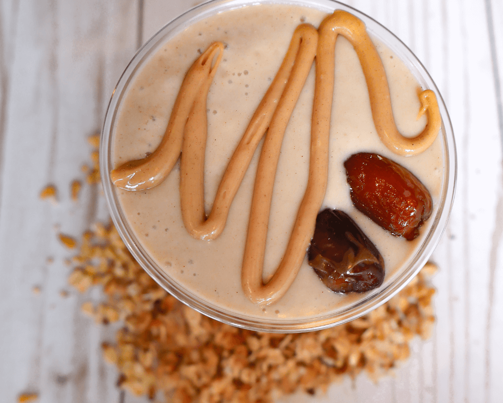banana, granola, dates, cinnamon, protein, peanut butter, almond milk
